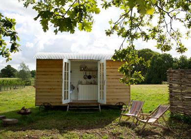 Oxney Organic Estate is a gorgeous organic vineyard and winery and you can visit for tours and tastings and stay in its beautiful accommodation. The winery is located in an old picturesque oast in the middle of the vineyard. Accommodation is available in a number of converted barns, shepherd’s huts and a cottage next to the vineyard. Oxney runs tours every Saturday between March and October (book online) and you can visit and enjoy a wine flight Tuesday-Saturday (March-October) and Tuesday-Friday (November-February).