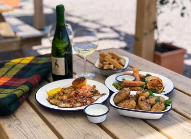 The set lunch menu will be a medley of local seafood such as whole fish, grilled fillets and smoked shellfish along with delicious sauces, side dishes, farmhouse bread and sautéed potatoes. Or you can select our mouthwatering vegetarian menu at checkout of halloumi fries, griddled vegetables, miso and nori "fish" cakes and pea purée.