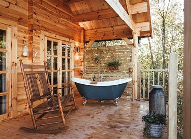 Coddiwomple Cabin and Willow the Wisp Cabin have exclusive hot tubs on their sun decks where you can enjoy some bubbles with your partner whilst sunken into your steamy bath stargazing and wildlife watching.