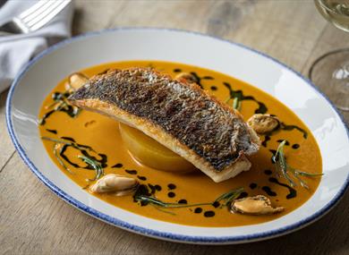 In the kitchen, preparing delicious food is a passion. Ingredient led, flavour driven, it takes its inspiration from the grand European / British tradition using the best local, hyper seasonal produce. The relaxed, yet charming dining room has a real sense of occasion, particularly at night with food that celebrates our location.